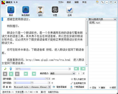 需要说明的一个问题是,朗读女只是一个朗读软件,要想让您的电脑朗读,就必须有朗读软件和语音库。