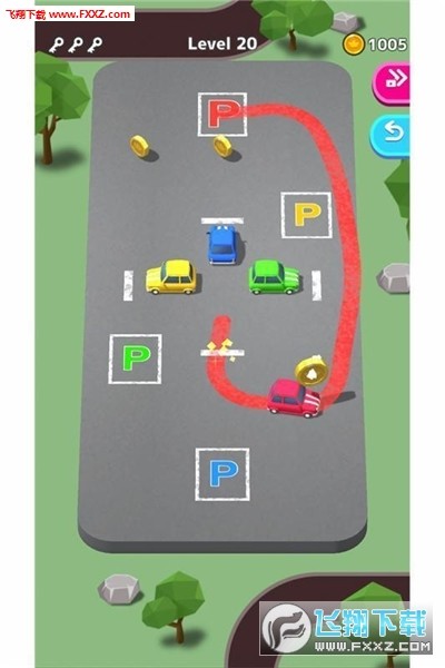 2、一根手指点击屏幕,左右前后移动车辆安全顺利的停到停车位中;