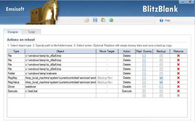Emsisoft BlitzBlank是一个专业的系统工具,有经验的用户,使您能够在启动时删除文件,注册表项和驱动程序,加载Windows和其他程序之前。该方案主要设计在去除使用自我保护,以防止用户删除他们棘手的恶意软