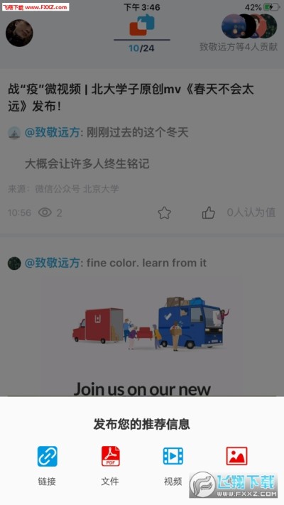 4.一键实现链接信息、文件视频、图片等信息的推送。重点资讯、国家政策解读、精彩赛事提醒、经典音乐、经典读物推荐、甚至一则公益广告,经典的PPT设计、PDF读物等文件等,只要是有价值、利他的信息,均可一键推送;
