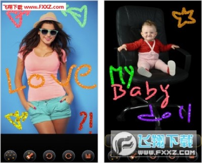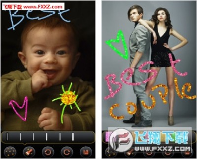 2、在6种颜色和6个闪光图案中添加闪光文字。先进的工具,如撤消,重做,刷大小增加。