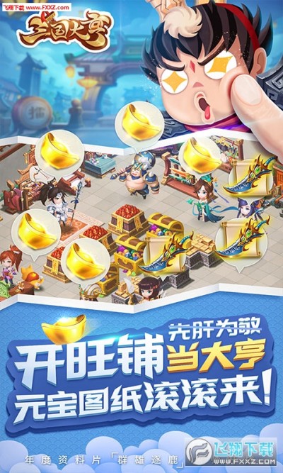《三国大亨》是一款模拟经营+养成+策略战斗的超融合创新手游~ 在这里,你将化身乱世小店老板~收集图纸打造神兵利器,然后卖给三国英雄们赚大钱;招募三国英雄,让他们帮你打工爽揍敌人;组建商业联盟,和联盟里的朋友一起用钱统领天下~除此之外游戏还有自由装扮、工匠养成等等系统让你的小店更具特色! 总之,我们的口号是:造装备!抢山头!偷素材!开黑店!养员工!赚大钱!调戏小姐姐! 总是打打杀杀有什么意思呢,鼓鼓的钱袋子才重要嘛!还等什么,赶紧干起来~