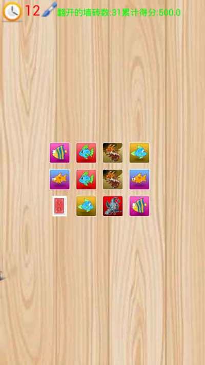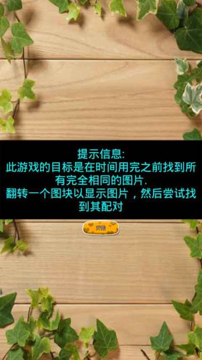 此游戏的目标是在时间用完之前找到所有完全相同的图片,翻转一个图块以显示图片,然后尝试找到其配对。