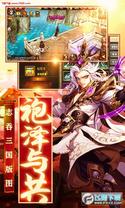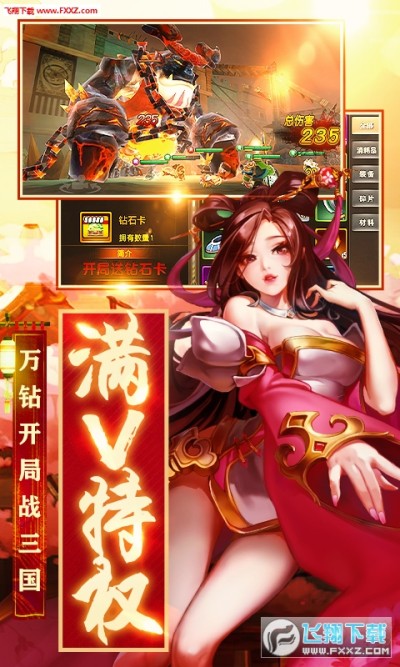 1、上线免费赠送绿钻卡,签到送橙将,送VIP17、万钻开局,开展三国版图