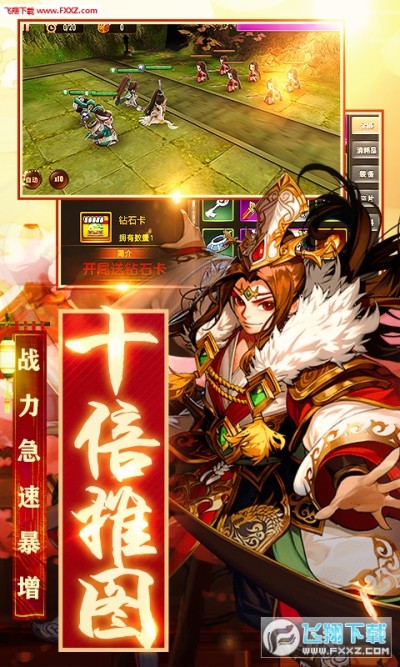 1、上线免费赠送绿钻卡,签到送橙将,送VIP17、万钻开局,开展三国版图