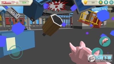 疯狂的猪模拟游戏是一款热血的模拟类的手游,玩家在游戏中将会变成一只猪,作为猪中的佼佼者,你并不想过那种吃了就睡睡了就吃的生活,你需要去干出一番大的动静,到城市中去大闹一场,不断的去干扰所有人的生活,你的战斗力是不容小视的,你需要去到处进行破坏,会让你的战斗力倍增,还会得到更多金币的奖励,使用金币还能够购买各种高级的装备进行使用