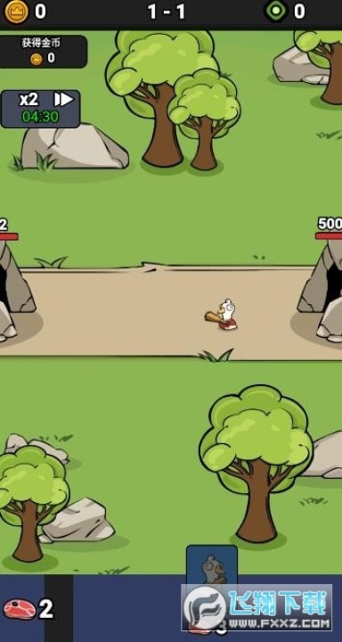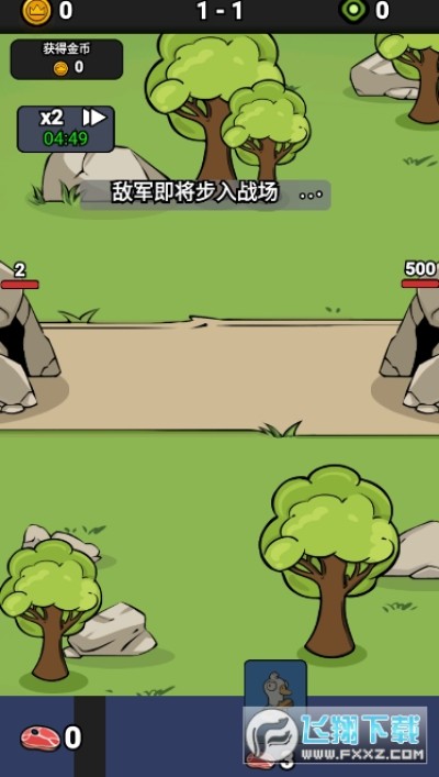 2、点击开始战斗,进入战斗界面,利用左下角的食物召集新的鹅鸭战士,看广告可以增加食物数量。