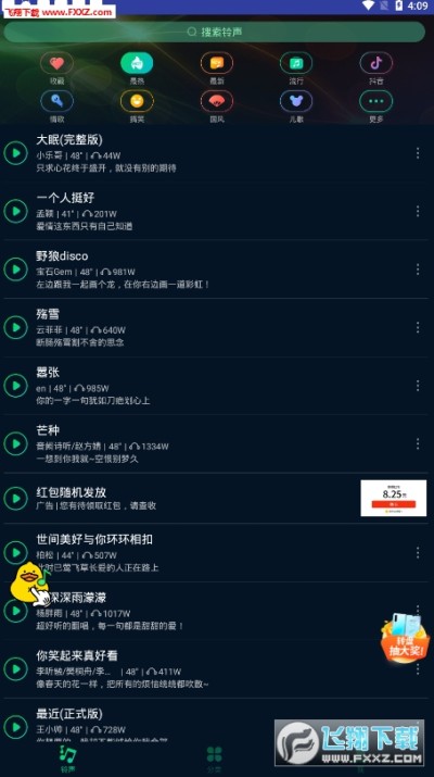 【精选分类】精细铃声分类,原唱、翻唱、恶搞、影视金曲、动漫、抖音网红热歌、DJ舞曲、伤感语录等;