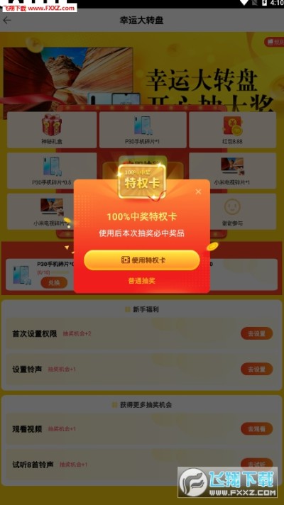1、观看视频广告可以获得抽奖次数;
