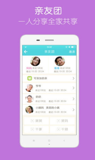 -私密空间——每位宝宝都有自己的唯一邀请码,亲友通过邀请码验证即能进入空间