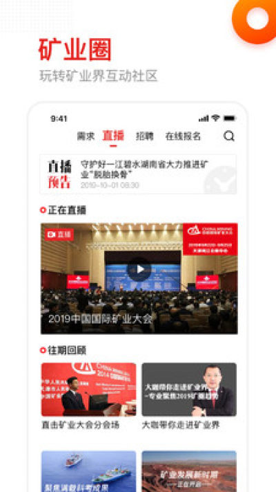 丰富的矿业圈内容:不仅为交易双方提供供需信息交流平台;还可以看矿界视频直播;了解各大矿企招聘信息;在线参会报名...充分调动矿业整体行业活跃度,让矿业人找到组织。