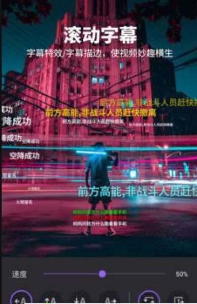 支持视频、图片添加字幕及滚动字幕;可为字幕添加字幕描边等细节,数十种字幕特效任意选择,可萌可酷炫;让你的Filmigo视频小影片别具一格,充满艺术家的氛围。