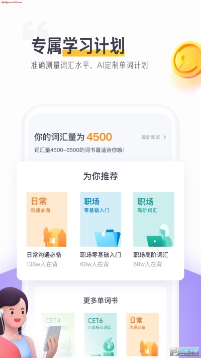 精心设计词汇量测试,3分钟测量词汇水平,为你量身推荐单词书,一键点击完成学习计划制定。