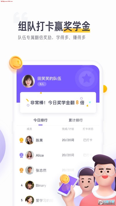 邀请好友一起组队学习、打卡完成即可获得队伍专属的翻倍奖励,学得多、赚得多,奖学金还能兑换现金!