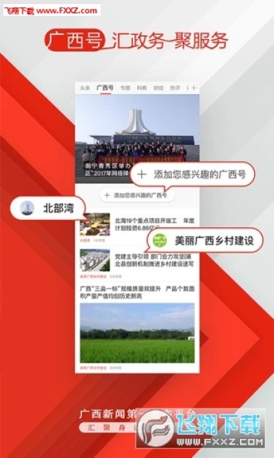 广西云客户端由广西日报客户端全新升级上线而来,是具有党报性质的新型媒体,也是传播各级党委政府声音、对干部群众开展信息服务和舆论引导的快捷传播手段,是“广西云”融媒体生态系统的重要入口、内容载体和功能体现平台。