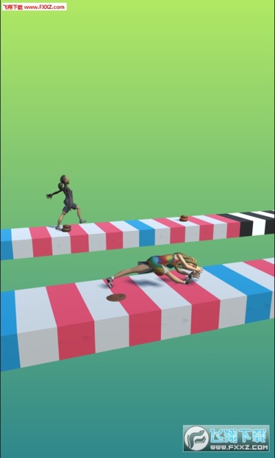 2.每次点击都能向前移动一步,但是可能会发生各种意外,比如一只脚没站位就会秀出劈叉技能;