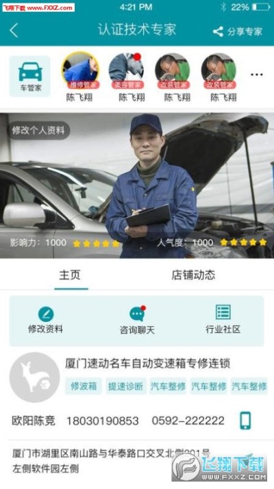 修车技术员可免费在平台开一个店铺,申请自己的名片,自己就能当老板;
