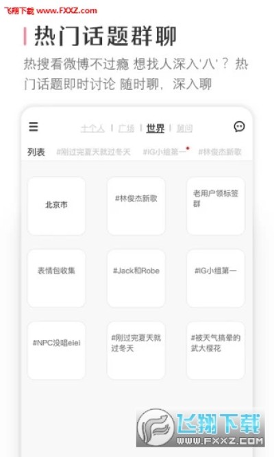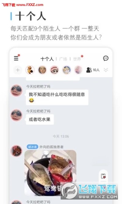 十个人app是一款群聊社交平台,这款软件每天可以给你匹配九个陌生人,然后你们就可以在一个群里面聊天,可以讨论各种热门微博话题,还有不同的板块可以在线讨论。