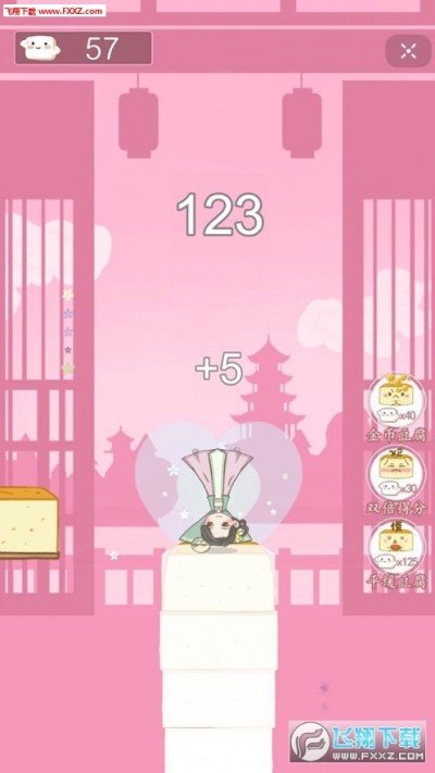 3、跟随着背景音乐点击屏幕控制豆腐西施完成叠叠高任务即可;