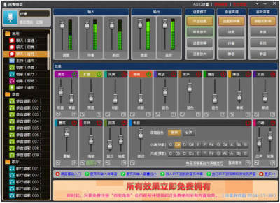 百变电音是一款针对电脑K歌所开发的专用机架效果器,软件集成KX效果和机架效果的高低音激励、模拟胆机、闪避效果、电话效果、变声效果、魔音效果、爆音效果、双音效果、震荡效果、环绕效果、电音效果、MC喊麦、主持等等,以上效果不但可以调节音色等参数,同时还可以任意组合,真正一键操作,效果轻松微调,无缝切换。让你K歌喊麦主持嗨翻天。