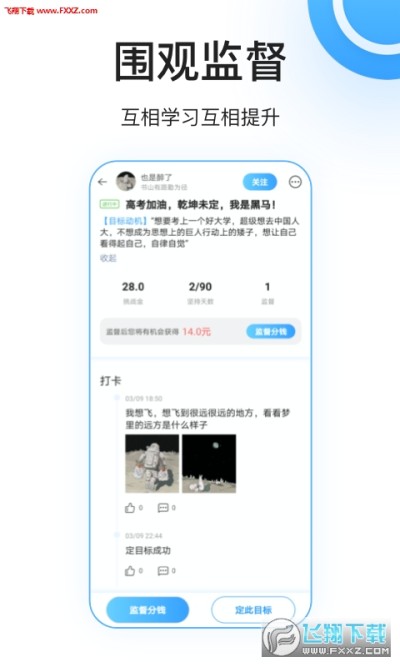 围观监督:您可以监督别人的目标,并鼓励他们完成目标。如果你监督的人放弃了目标,你可以获得奖励。