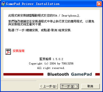 本驱动将增进你的行动装置与GamePad之间的互动性,请使用ActiveSync软件通过红外线或者传输电缆连接你的电脑与Pocket PC/Microsoft Smartphone