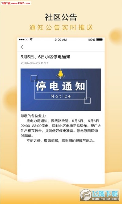 报事报修、小区公告、生活缴费、常用电话、预约活动室等社区物业服务内容。