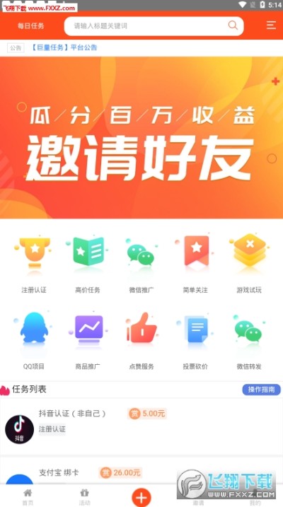 巨量任务是最新发布的一款手机赚钱软件,主要通过完成任务来获取收益,平台每天都会更新大量的任务供用户选择,邀请好友还能获得永久分红,推广的奖励还是蛮高的。平台内提供大量试玩任务、悬赏任务、关注任务、推广任务、点赞服务、注册认证、转发任务等多种内容尽在其中,让广大用户轻松兼职赚钱任务收益。
