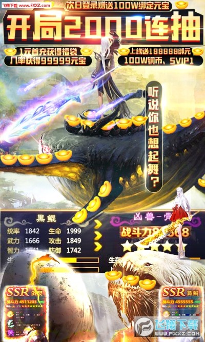 ★所有档位首次购买更是能获得多倍元宝!最高到达10倍!上线即可礼包码领取2000连抽(记得平台领取哦)!次日登录赠送100w绑定元宝!