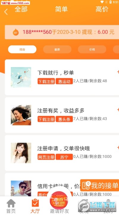 可筛选:最新悬赏、审核快、赚钱多通过率高,选你所想