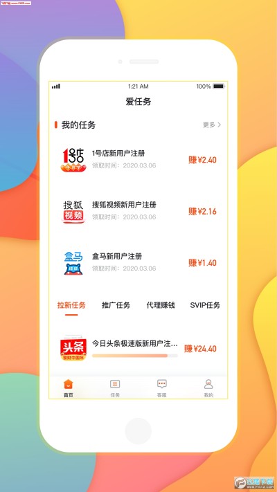 爱任务app是一个综合性的手机任务赚钱平台,所有任务都是可以用碎片化时间就能完成的,真正的做兼职赚钱,不耽误主要的事情,不需要花费多余的时间,也不限地点,随时都可以在线做任务,有需要就下载爱任务app体验吧。