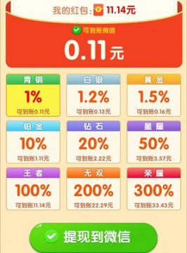 红包按百分比提现,提高等级可提升比例,但是我没有找到升级的条件。