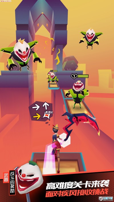 跑酷游戏太平淡?那就加速冲刺!增加了加速创新操作,下滑再下滑,加速再加速!感受在极限速度下的连续操作感和打击感吧!独特Fever模式,古典与杀戮,展现反差中的暴力美学。与此同时,游戏的关卡末尾,有轻松熊在迎接一路奋战的疯狂少女,暴力以外,可爱也必不可少!