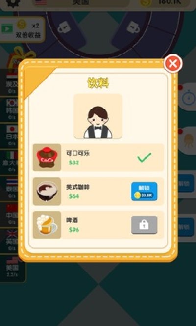 美食之旅是一款乐趣无穷的放置玩法的模拟餐厅经营类游戏。在游戏中扮演大厨,烹饪世界各地的美味佳餚,迎接来自全世界的美食家!挣更多的钱,然后将分店开满全世界!