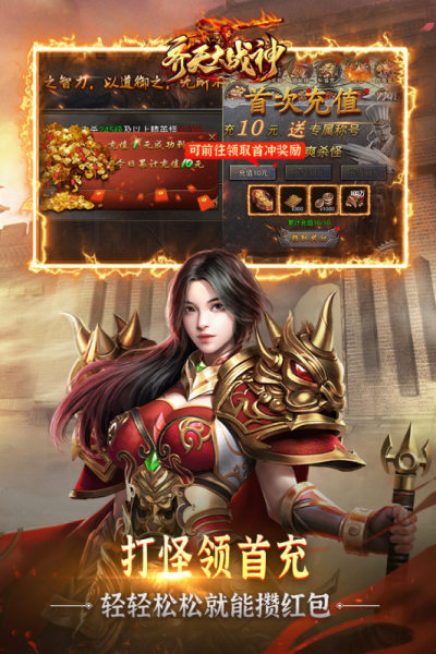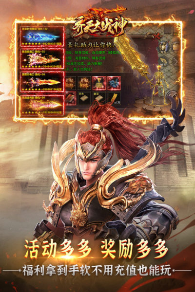 本服承诺上线领取开局礼包,免费送满级VIP、时装武器、海量材料、强力技能召唤武将!每日活动不停,真充红包能免费获得灵符!豪礼助力一路飙升,一打骷髅全都倒,散人也疯狂!多个区服阵营PK挑战、跨服押镖、跨服BOSS击杀等多种多样激情玩法等你体验,快来《齐天大战神》和兄弟们一起攻下沙城,每人都能分到红包噢!