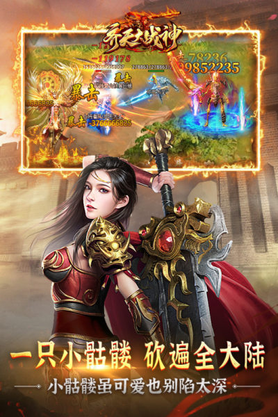 《齐天大战神》是一款超级骷髅王传奇手游。上线共畅激情,开启三国风云剧情,续写经典盛世传奇,承载着当年一份真挚的兄弟情义! 本服承诺上线领取开局礼包,免费送满级VIP、时装武器、海量材料、强力技能召唤武将!每日活动不停,真充红包能免费获得灵符!豪礼助力一路飙升,一打骷髅全都倒,散人也疯狂!多个区服阵营PK挑战、跨服押镖、跨服BOSS击杀等多种多样激情玩法等你体验,快来《齐天大战神》!