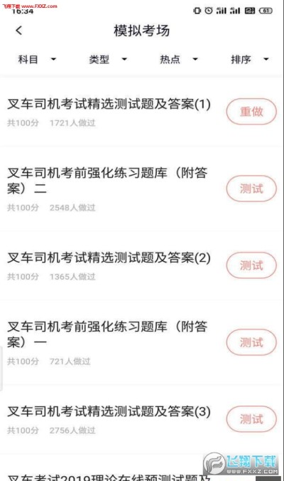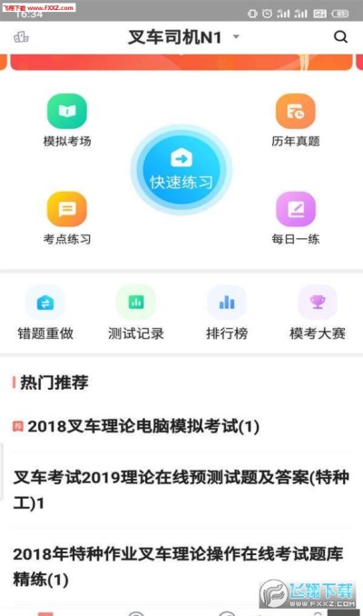 有模拟考场、历年真题练习、快速练习、考点练习、做题记录等多种学习与做题模式、丰富多样化的陪你一起准备叉车司机考试。