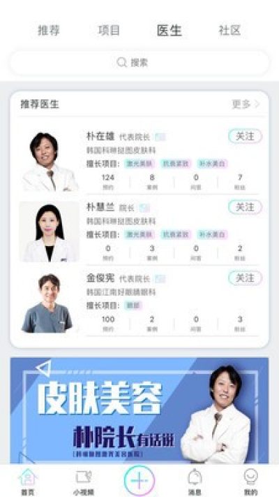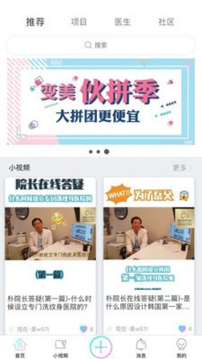 有韩国多家资质齐全、诊疗权威的整形医院入驻,范围覆盖韩国多个城市,提供微整形、整形、牙科、健康管理等医疗项目,并有专业医生团队助阵,为用户推荐更多医师,提供高效、安全、周到的服务。同时与医院合作开展医美项目拼团、砍价等活动,为国内用户争取更多优惠福利。小型社区包含帖子、日记、院评、问答、科普、小视频动态,涵盖了各种热门医美知识和整形疑问解答,帮助更多用户科学变美!