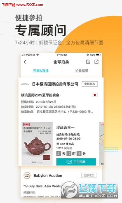 艺狐全球拍卖app是艺狐在线推出的一款手机文化艺术品在线拍卖服务平台,这款软件是可以针对全球范围内的文化艺术品打造的拍卖app,在艺狐全球拍卖app上直播竞拍,每天都有拍品上新,还有专业的顾问为您服务。