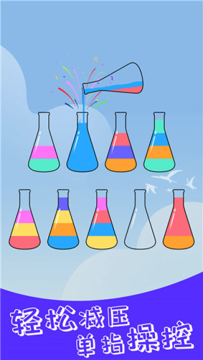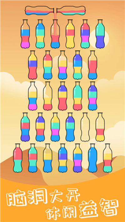 瓶子与颜色数量都会逐渐增加,刚开局时只是简单的三四个瓶子拼接。