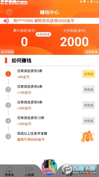 秀来电app是一个免费赚钱的来电秀软件,通过观看视频来电秀的方式获得红包金币的奖励,亦或是直接去选择铃声哦,赚钱中心还有很多的任务可以做,最重要的是还可以抽手机、赚钱提现,赶快下载秀来电app试试吧。