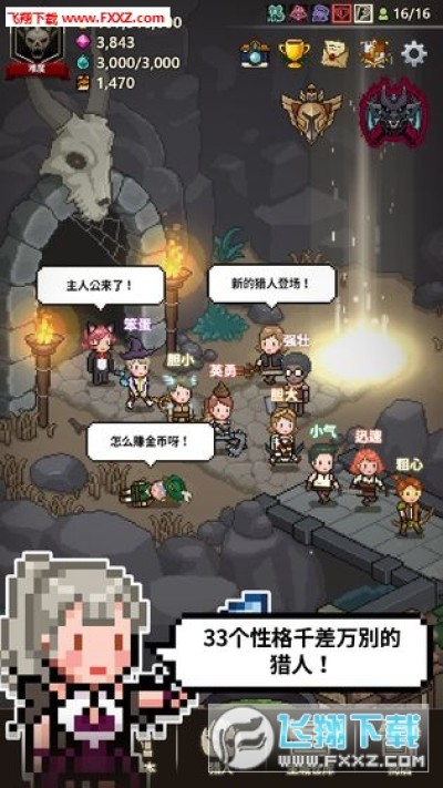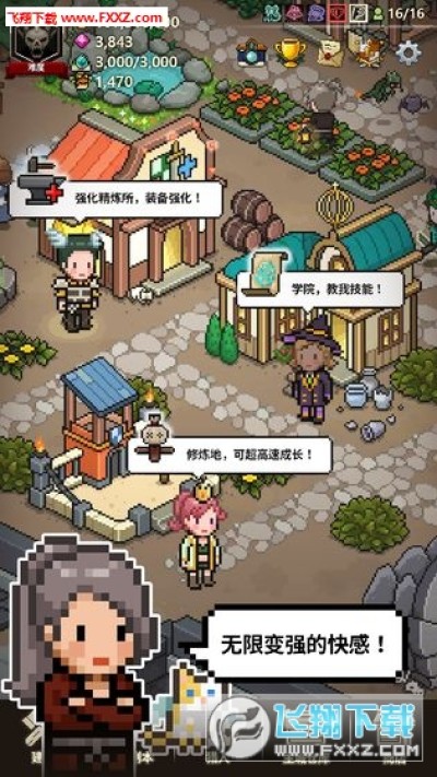 猎魔村物语内购版是一款像素暗黑风格的地下城模拟经营类手游,玩家可以经营自己的小镇,招募不同的猎人来对抗强大的敌人,在不同的地牢里消灭敌人闯关,收集各种武器材料升级自己的小镇,强化自己的敌人对抗更强大的敌人!