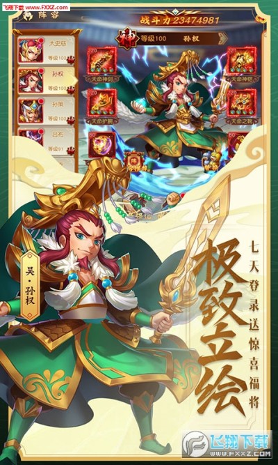 ★连续登录7天上线即送神将(曹操、孙权、刘备三选一)!