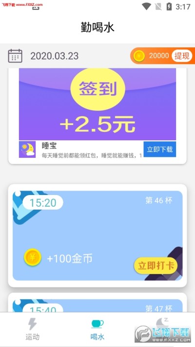 【喝水赚钱】每天喝水,20分钟一次,轻松打卡,领取金币奖励!