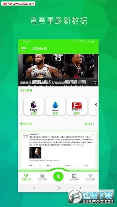球动体育app是为用户推荐的一款实用的体育资讯软件,软件上为用户提供了各种体育资讯,用户可以在软件上挑选自己感兴趣的体育资讯,并且可以查看最新的比分,感兴趣的用户快来下载吧。