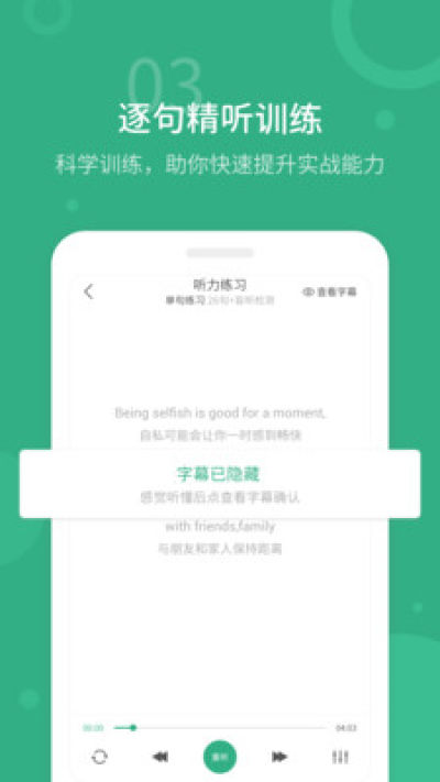 3:提供精听功能,围绕句子练习和填空,提高听力水平