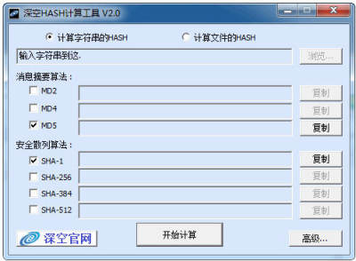深空HASH计算工具是一款实用型非常强的哈希值计算软件,可以计算字符串以及文件的 md2、md4、md5、sha-1、sha-256、sha-384、sha-512值。可以用来检验文件是否被修改,计算指定字符串的相关散列。