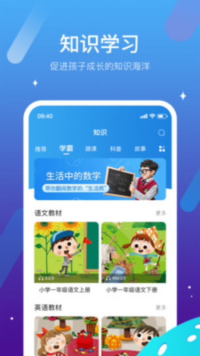 【学习教育】 提供K12学习课程、AR虚拟学堂、儿歌、故事、素质教育等精选内容。