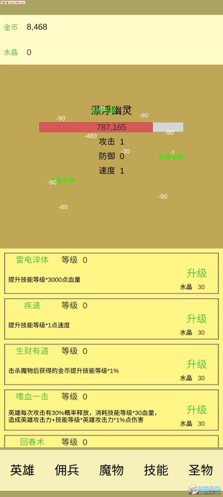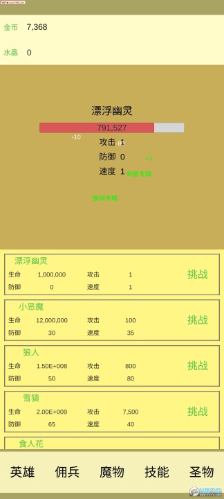 魔物侵袭是一款放置挂机点击类游戏,你的目标就是打魔物升级招募佣兵,魔物越强大获得奖励越高,努力的打倒一个又一个的魔物吧!最后迎接你的将会是超级超级超级强大的魔王。。。