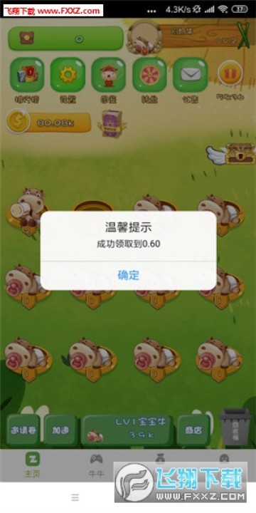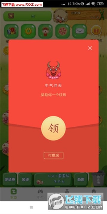 2、两只同样等级小牛合成升级,每升2级可得一个0.6元红包;